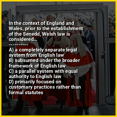 Welsh law (Welsh: Cyfraith Cymru) is a semi-autonomous part of the English law system composed of legislation made by the Senedd. Wales is part of the legal jurisdiction of England and Wales, one of the three legal jurisdictions of the United Kingdom. However, due to devolution, the law in Wales is increasingly distinct from the law in England, since the Senedd, the devolved parliament of Wales, can legislate on non-reserved matters.