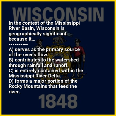 ⭐ In the context of the Mississippi River Basin, Wisconsin is geographically significant because it…